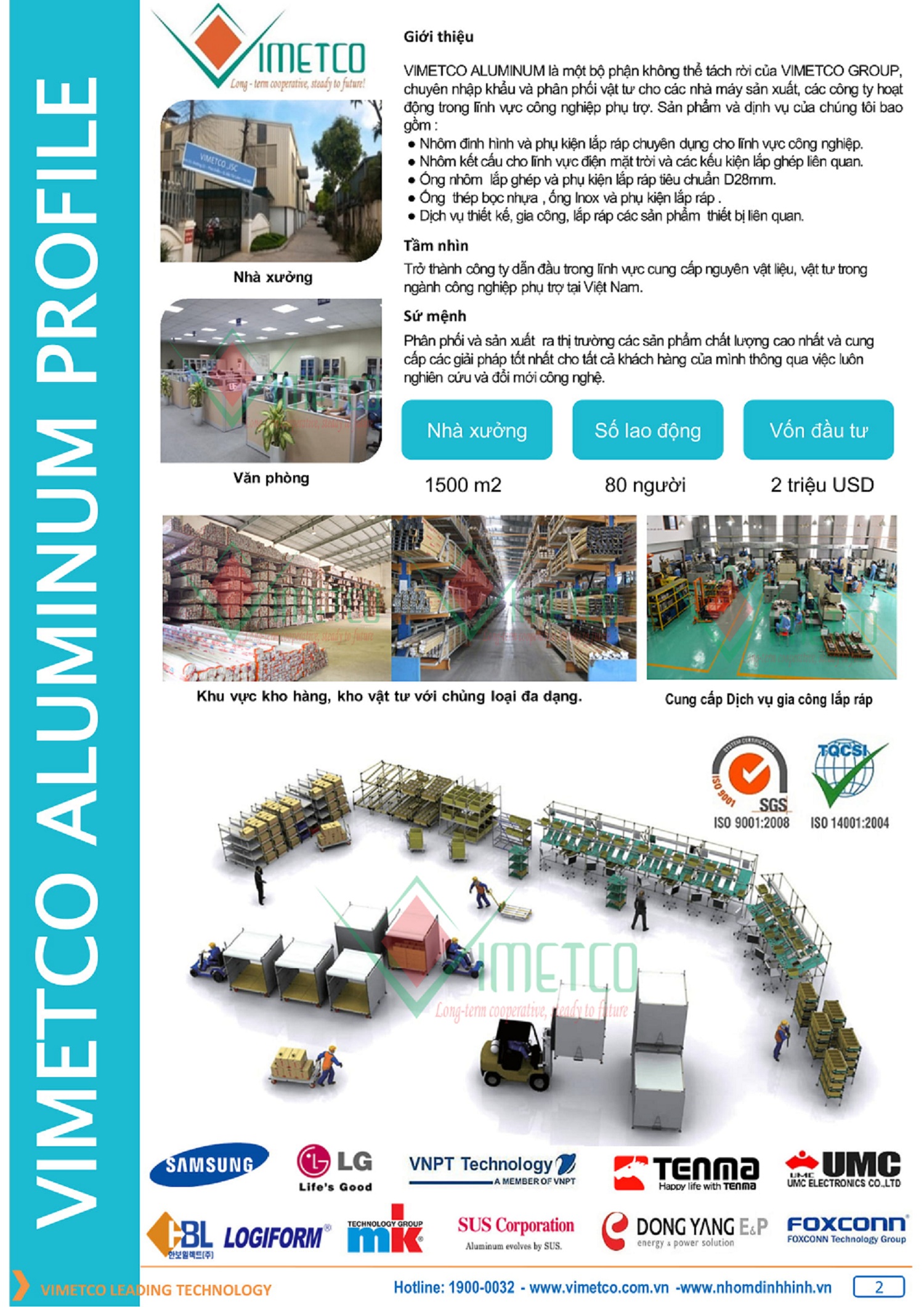 ● Nhôm đinh hình và phụ kiện lắp ghép vimetco chế tạo dây chuyền lắp ráp và Test trong ngành điện tử, viễn thông.