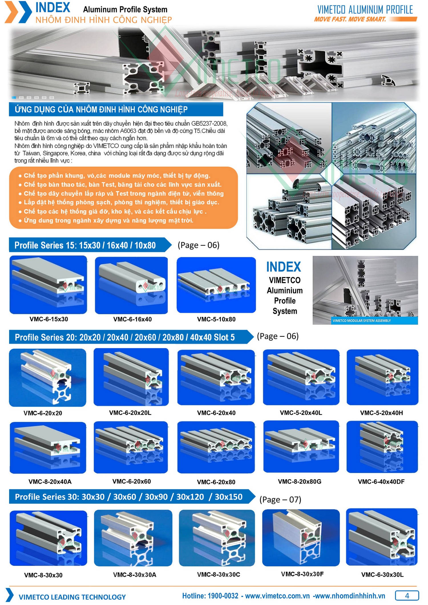 ● Nhôm đinh hình và phụ kiện lắp ghép vimetco chế tạo hệ thống giá đỡ,kệ kho và các kết cấu chịu lực .